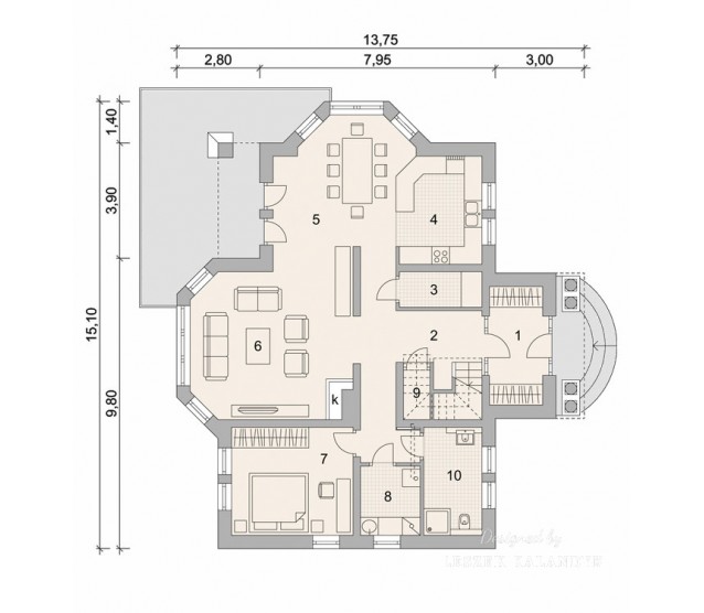 8. Attic wall height0,9 m