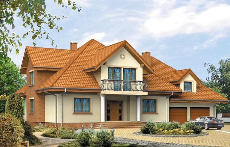 House Bachus 5 was created in imitation of the famous Bachus project. Unlike the original version, the design has more rooms, a larger area, a basement. The Bachus 5 house plan is suitable for a medium-wide plot of land. The house has a simple shape, so its implementation will not require too much financial resources. Glazing provided in the bay will give the interior more spaciousness. It is intended for investors who have a plot of land that allows for the implementation of a free-standing project. The project provides for a double garage in the line of the building. It is also an interesting proposition for people looking for a house with a tent roof that perfectly protects the building against unfavorable weather. The Bachus 5 project is a one-story house with an attic, thanks to which the household members can enjoy greater privacy. The basement included in the project will be appreciated by people for whom functional solutions are of particular importance. The house design is characterized by a spacious living area. A big advantage of the kitchen closed to the living room is the clear division of rooms. Thanks to this solution, the household members can pursue their cooking passion in peace. There is a table in the kitchen that makes it more functional. The architect also provided a place for a dining room, thanks to which shared meals will be an excellent opportunity to talk in a family atmosphere. Additionally, the living room has a fireplace, which gives the interior a unique atmosphere. The eight bedrooms included in the house are the optimal option for a large family. The space can also be used as a guest room or office. The terrace designed by the house is a perfect place to relax. The brick technology recommended by the architect ensures durability and solidity of the structure. Bachus 5 will satisfy investors who appreciate the features of a traditional style, so it will look great regardless of the area.