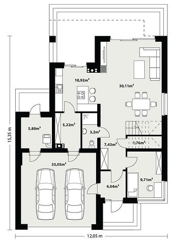 10. Garaż dwustanowiskowy33,05 m2