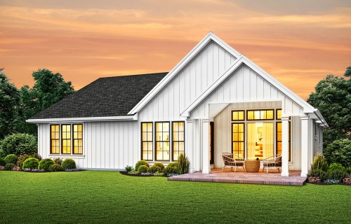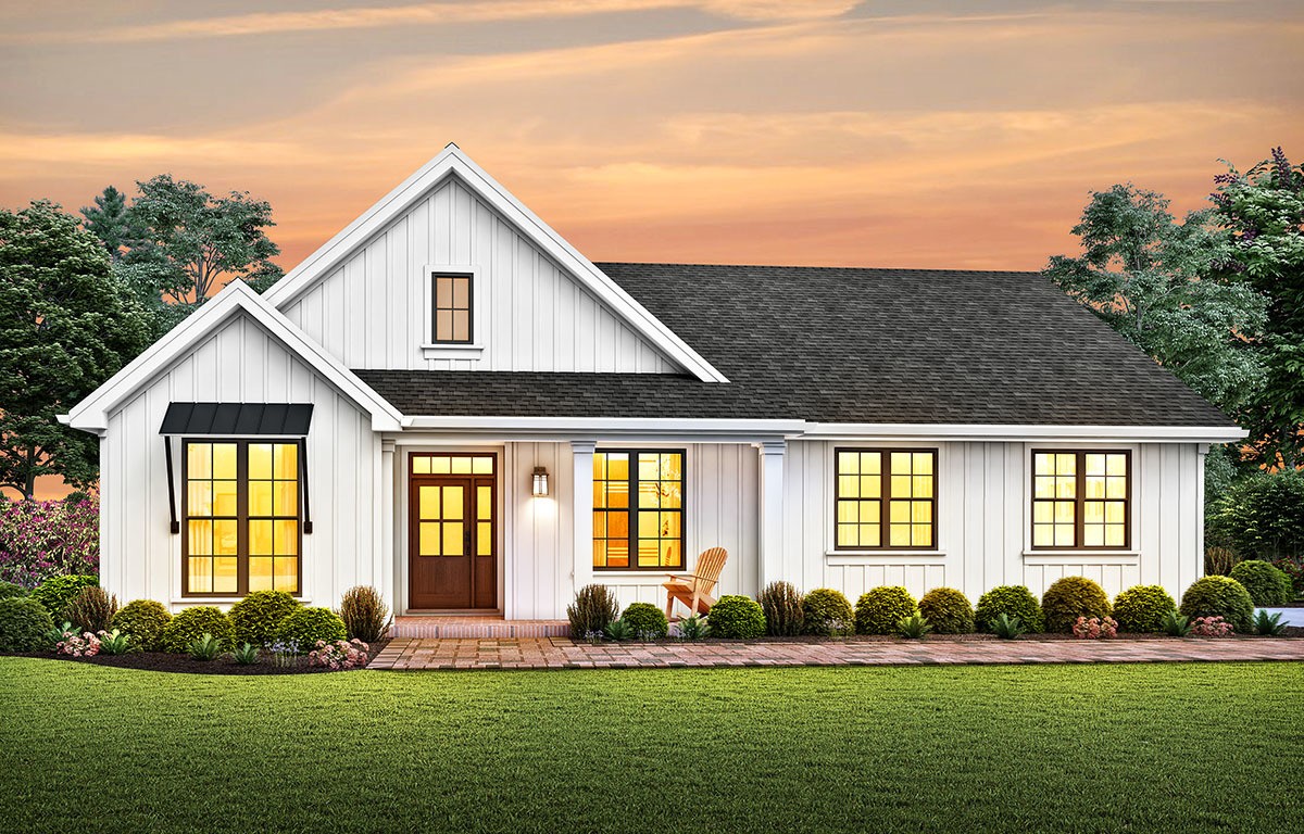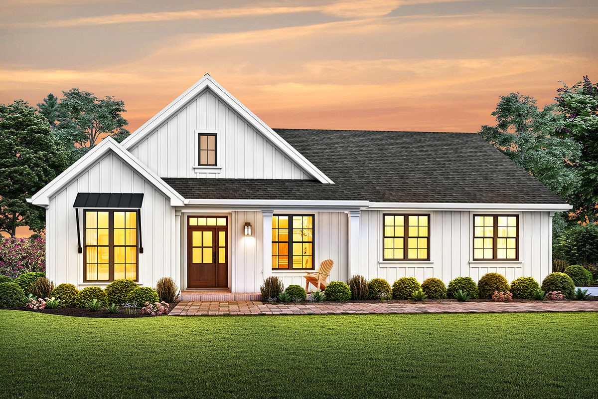 One-story Modern Farmhouse Plan with a Modest Footprint - 69753AM floor plan - Main Level