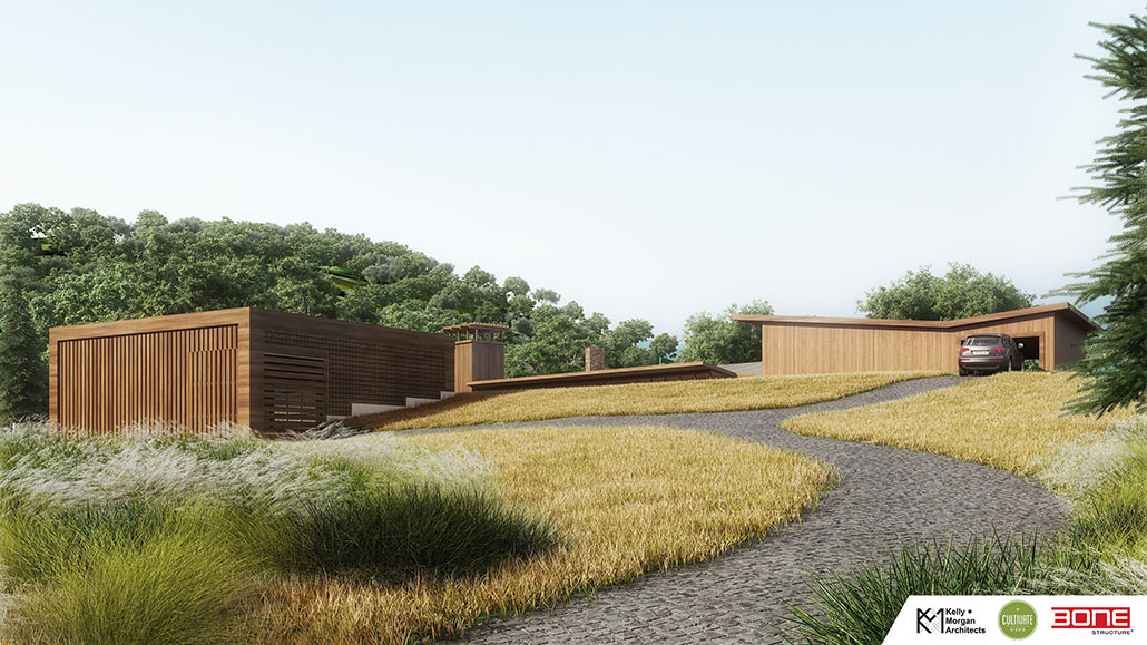 The new home will be an energy-efficient, 100% solar, net zero energy home thanks to JNCN HOMES. Architects Brendan Kelly and Kerry Morgan have designed the new home to accommodate a 360-degree view. The land is beautifully rolling and each day the sun rises in a gap in the ridge to the east. The rise the home is situated on is in the middle of a small valley that slopes away into high ridges once covered in grapevines and surrounded by trees.