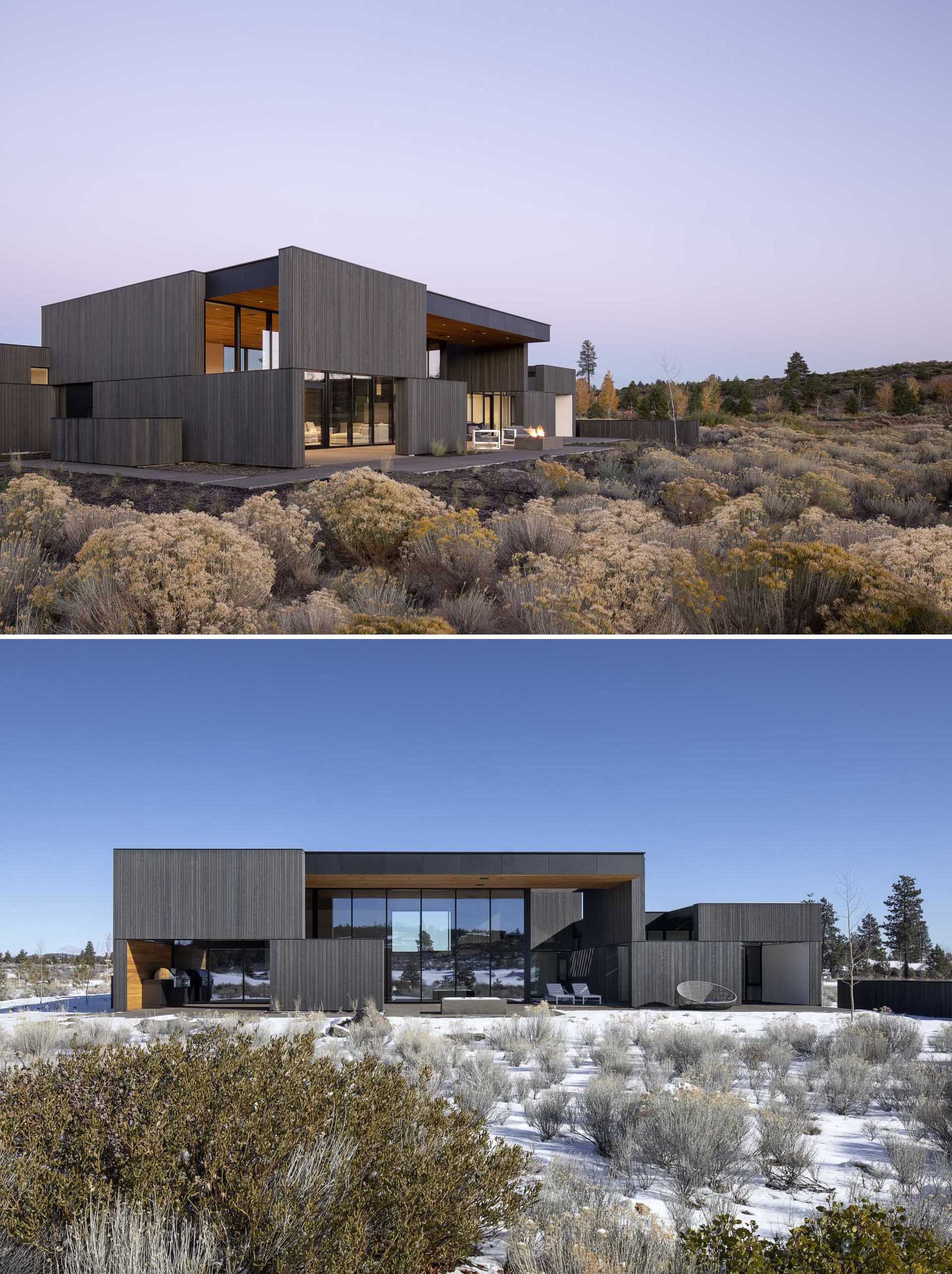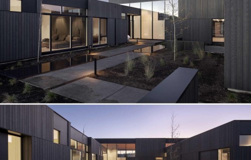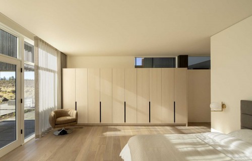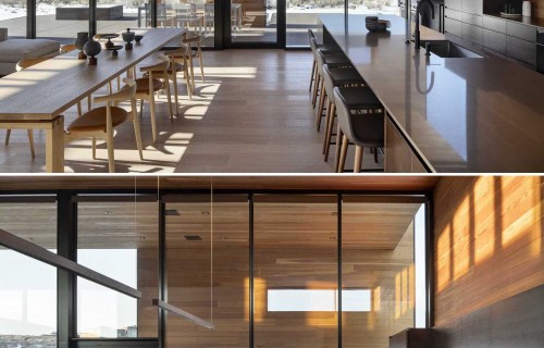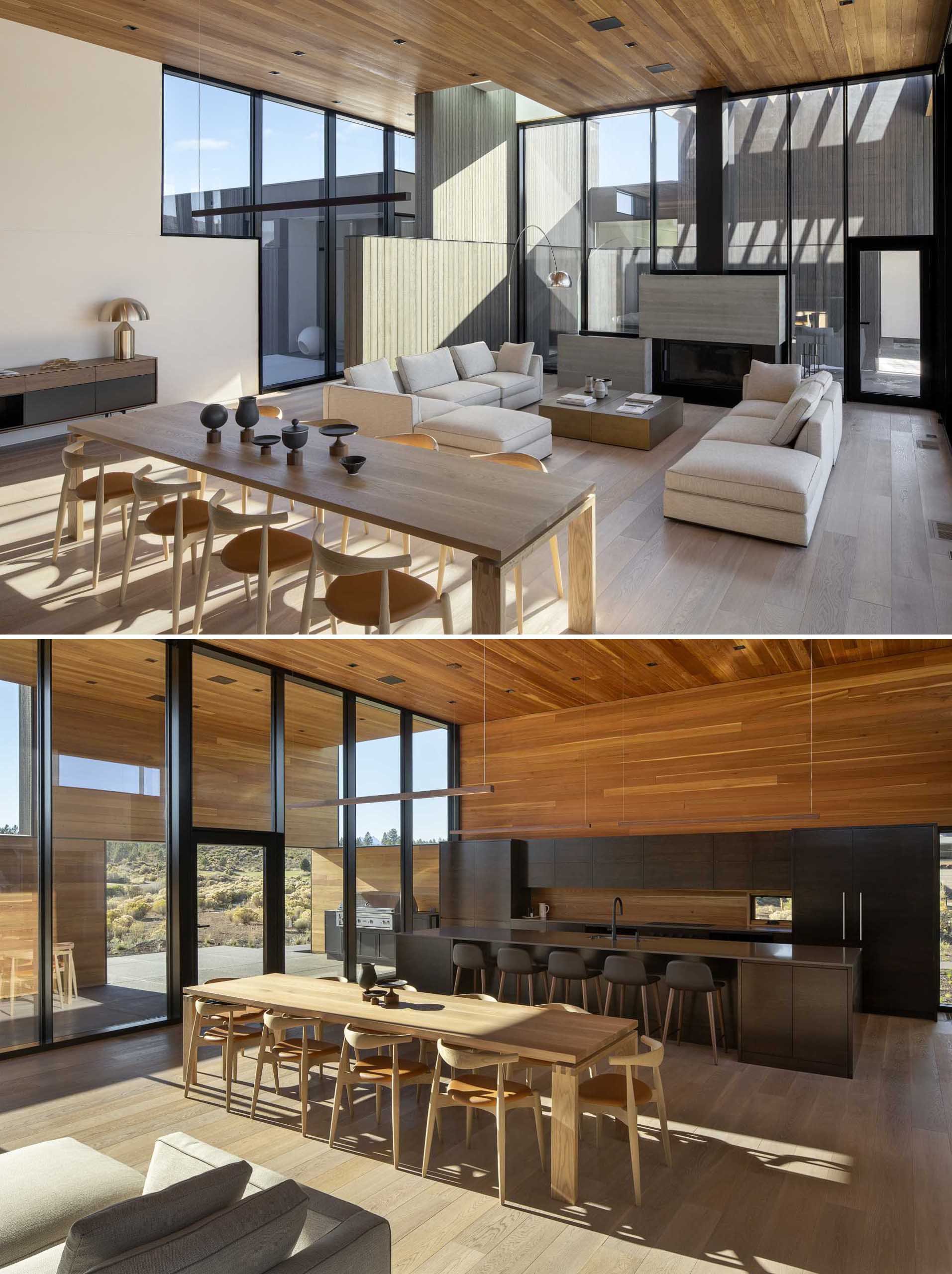 A High Ceiling Covers The Living Room And Kitchen Inside This New House