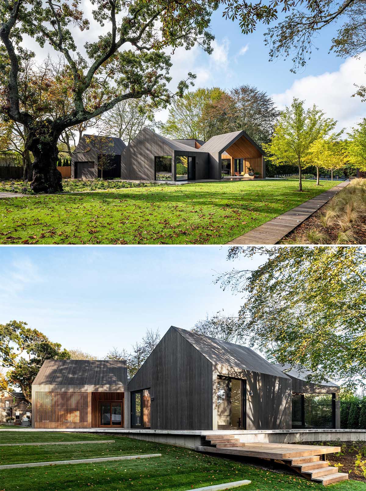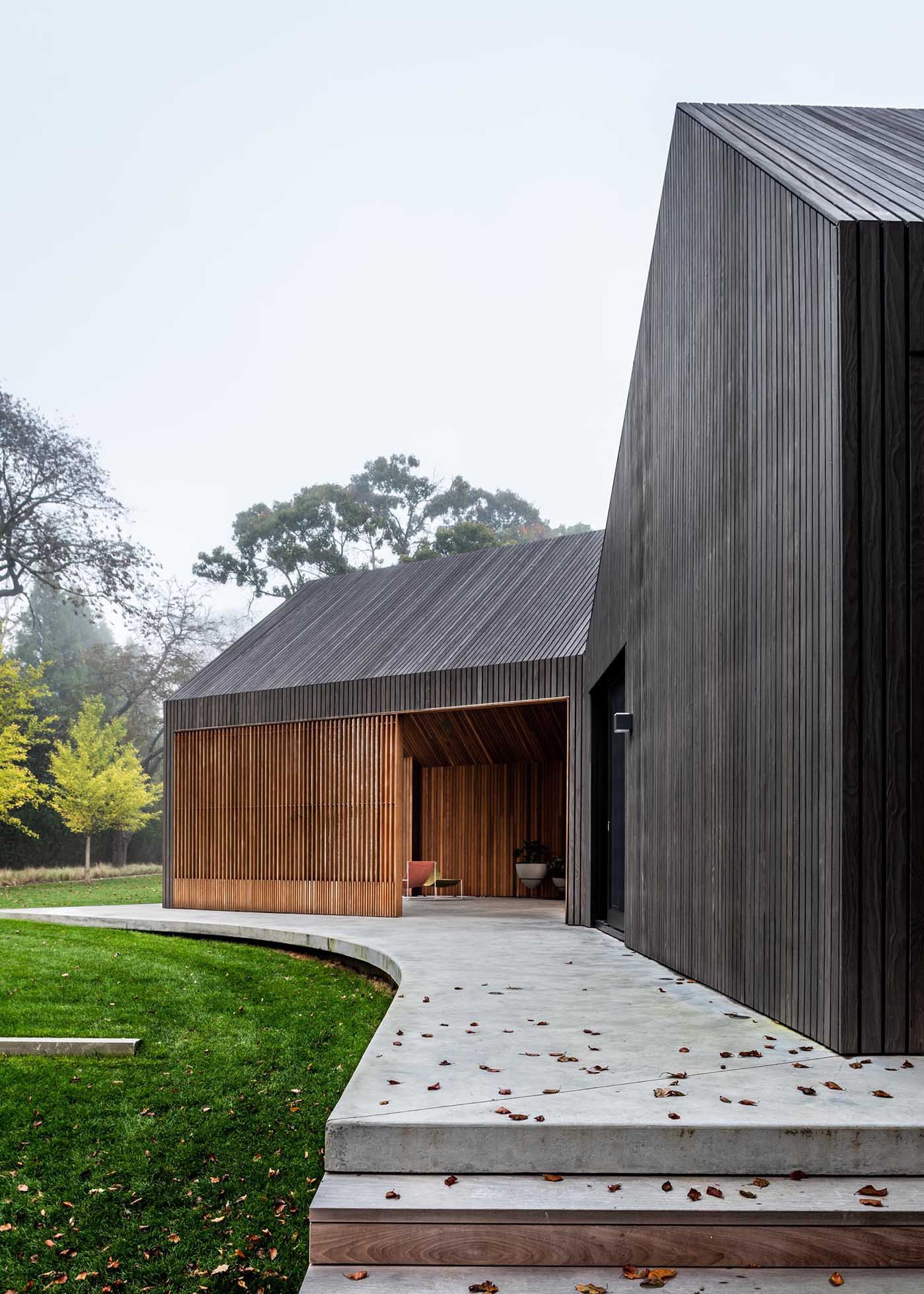 Deep Gray Slatted Accoya Wood Siding Covers The Exterior Of This Modern House