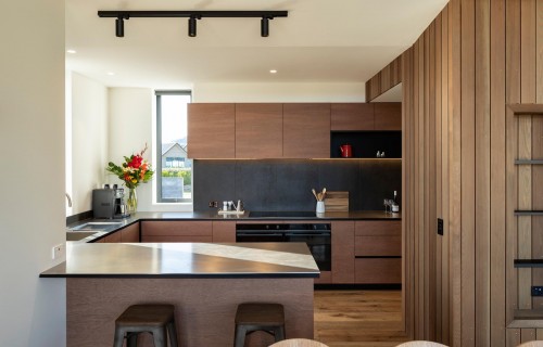 Dark Vertical Wood Siding On The Exterior Of This Modern House Gives It A Strong Personality