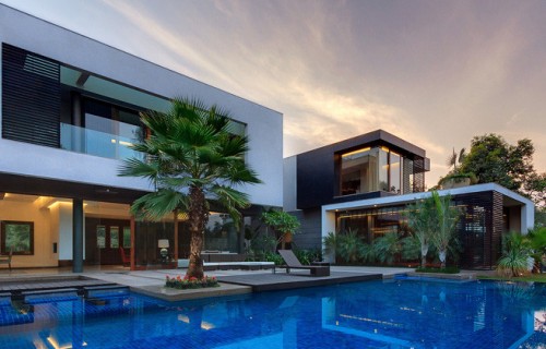 This Home Was Designed To Wrap Around The Swimming Pool