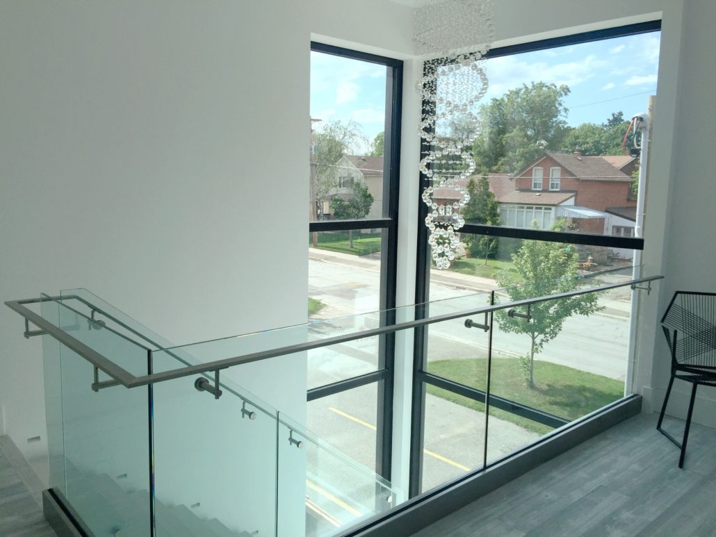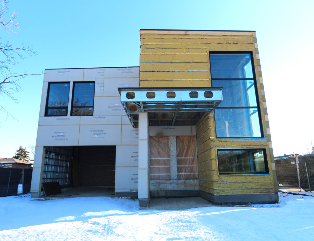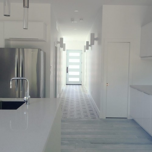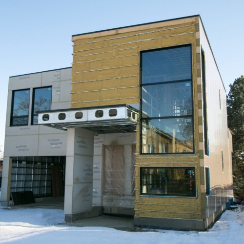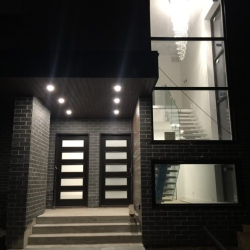 Located in Etobicoke, this two storey home has been designed with our Infill inspiration as a starting point. The home also features two bedrooms, a shared bathroom, and a laundry/utility room, with a mudroom shared between the garage entrance and the main entrance. There is a social space with higher ceilings on the upper floor and a single-car garage with a mudroom. The living room at the front of the building features a fireplace and is cantilevered over the entrance.
