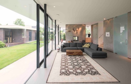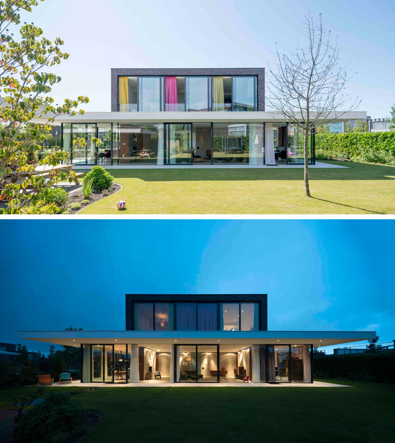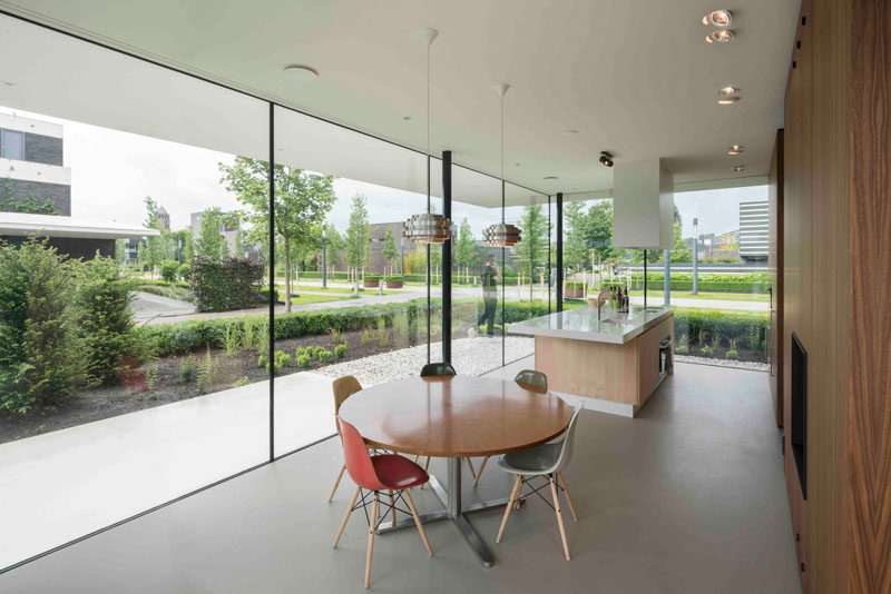 The ground floor of this house is almost completely surrounded by windows