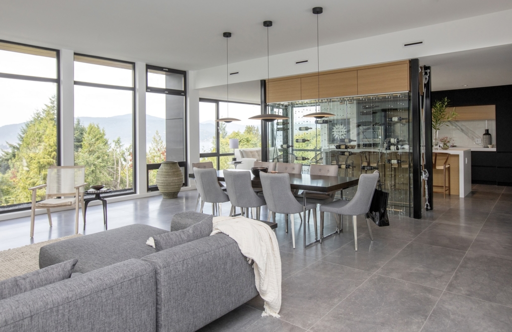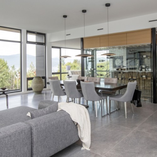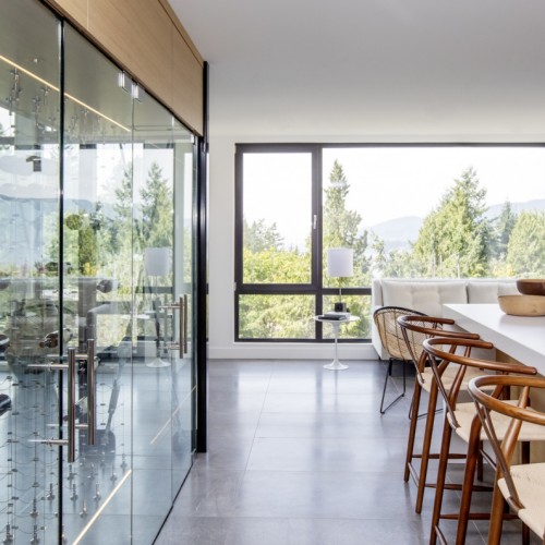 This 5,600 sq ft contemporary custom home is located in West Vancouver, BC. Upon your first steps in the door, you are greeted by JNCN HOMES’s exposed structural steel cables that have been incorporated into the design. Behind the wine cellar, you will find a floor-to-ceiling windows which wrap around the entire south side of the home, looking out onto the Strait of Georgia.
