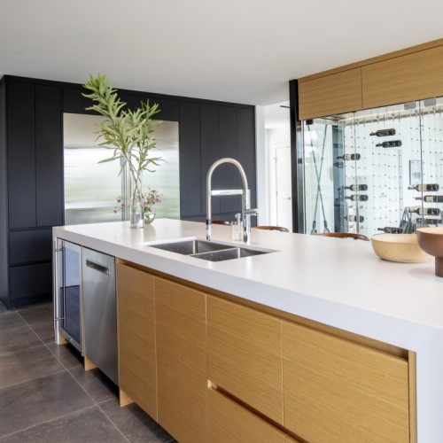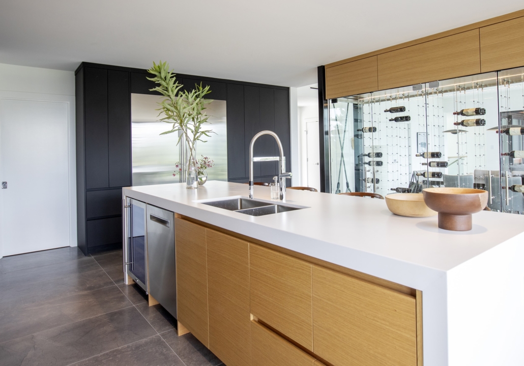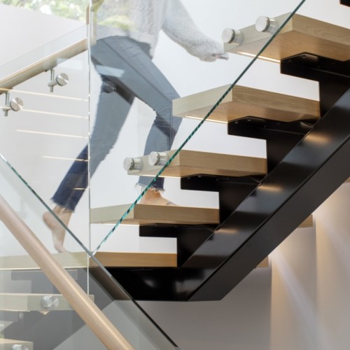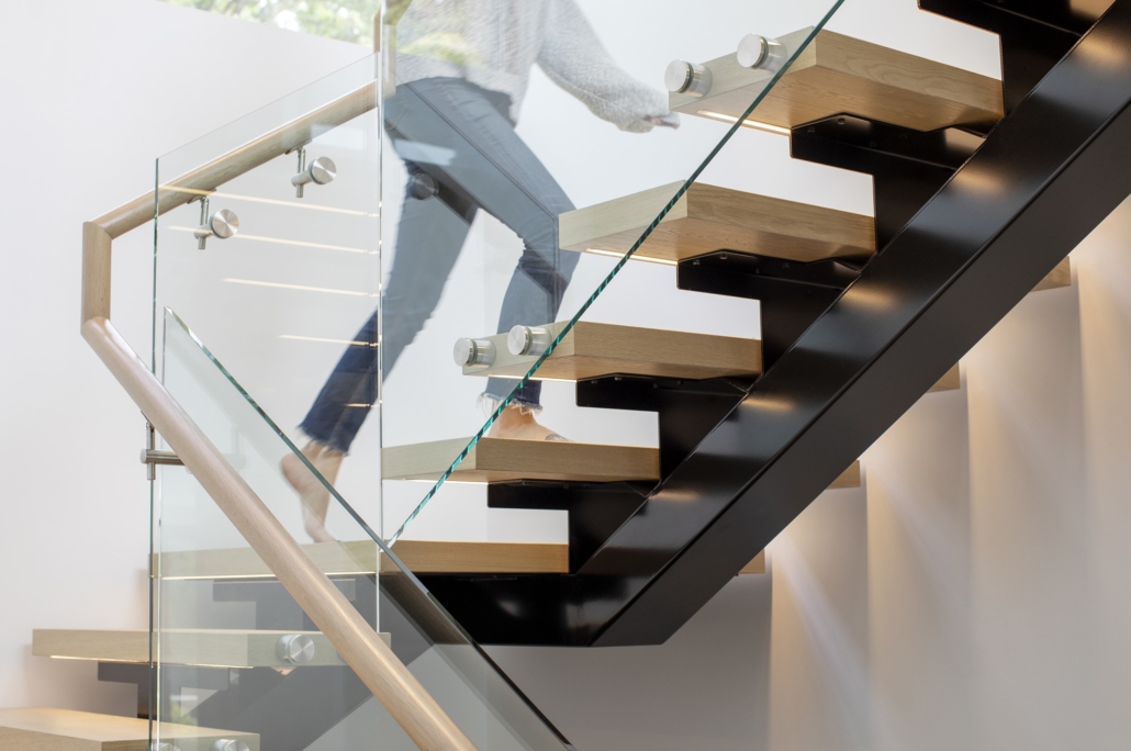 But the wine cellar isn’t the only piece of functional art! The integrated floating stairs by JNCN HOMES create a beautiful feature for the lower floor, especially the way the light falls through them from the window above.