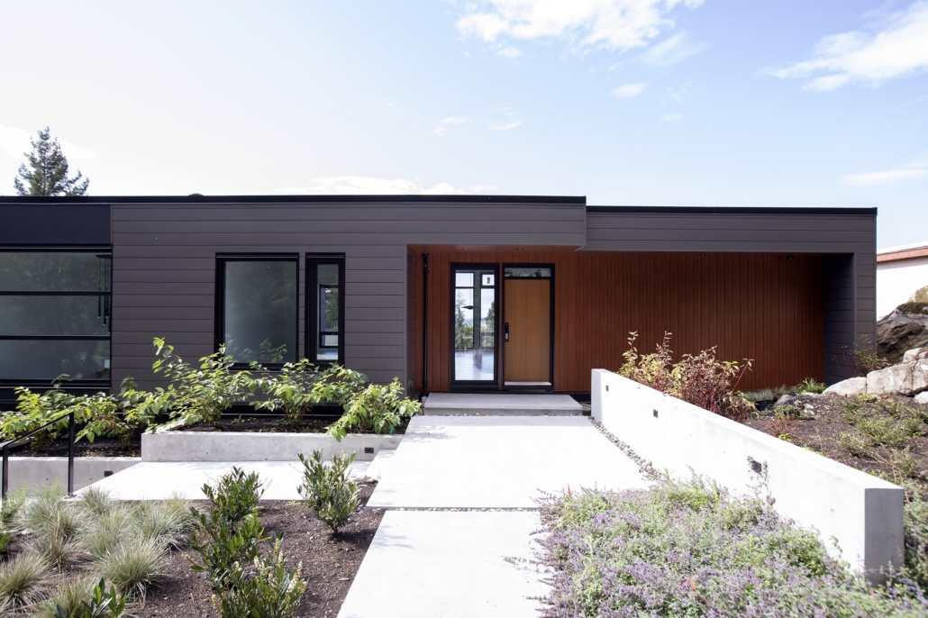 The wine cellar was a collaboration between Team Hasler and Blue Grouse Wine Cellars. The architect incorporated the apparent steel cables, which flank the wine cellar on each side, into the design. The wine cellar adds a backdrop for the dining area, as well as the kitchen, and makes for a nice divider for the great room. Follow the floating stairs to the lower floor and you will step into a media room that opens up on the lap pool. Also downstairs you will find three bedrooms, the laundry room, and the informal entryway coming from the driveway.